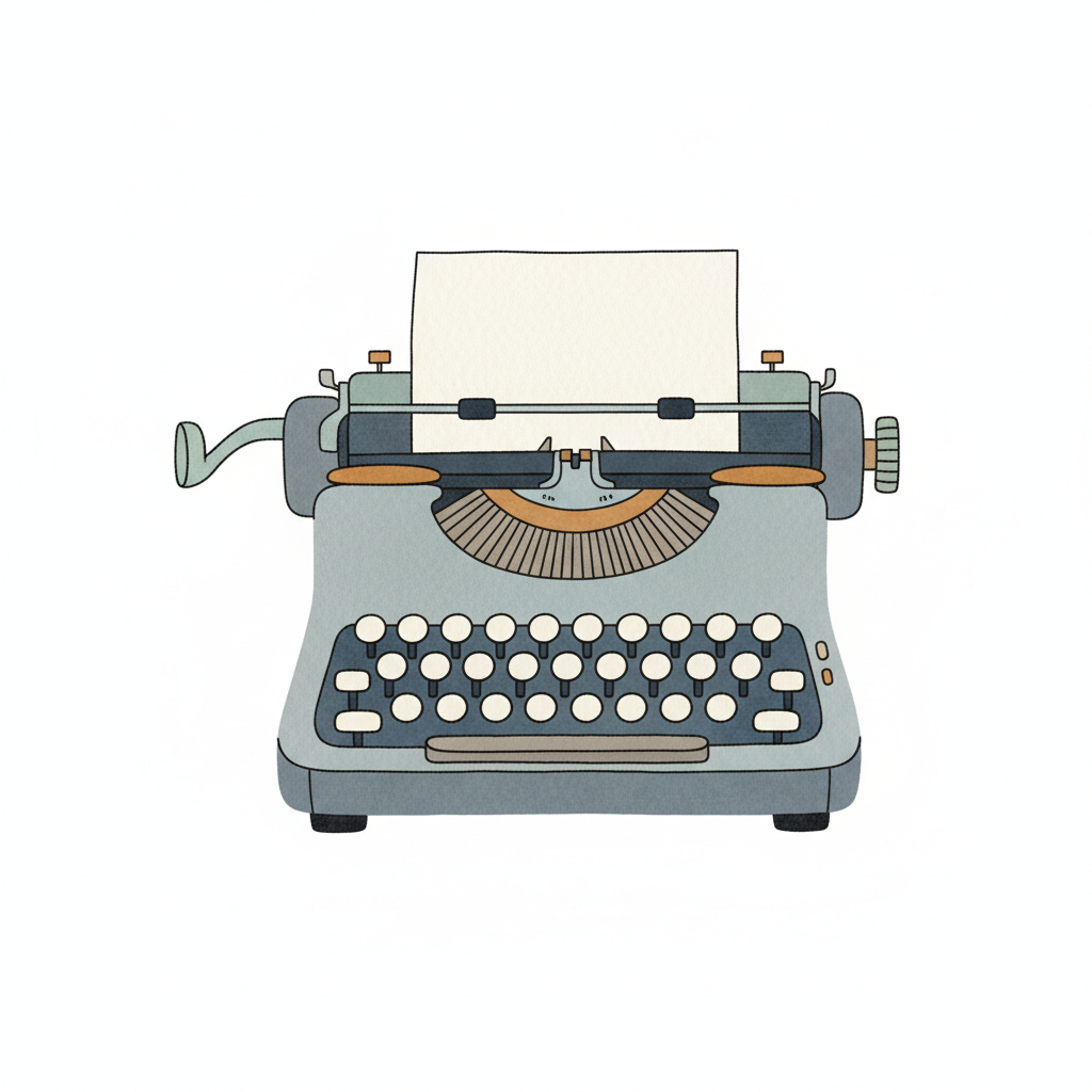 Illustration einer altmodischen Schreibmaschine mit eingelegtem, leerem Blatt Papier.