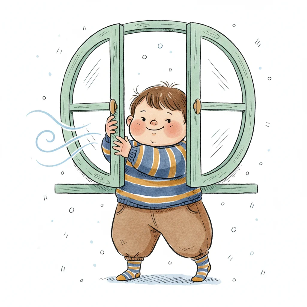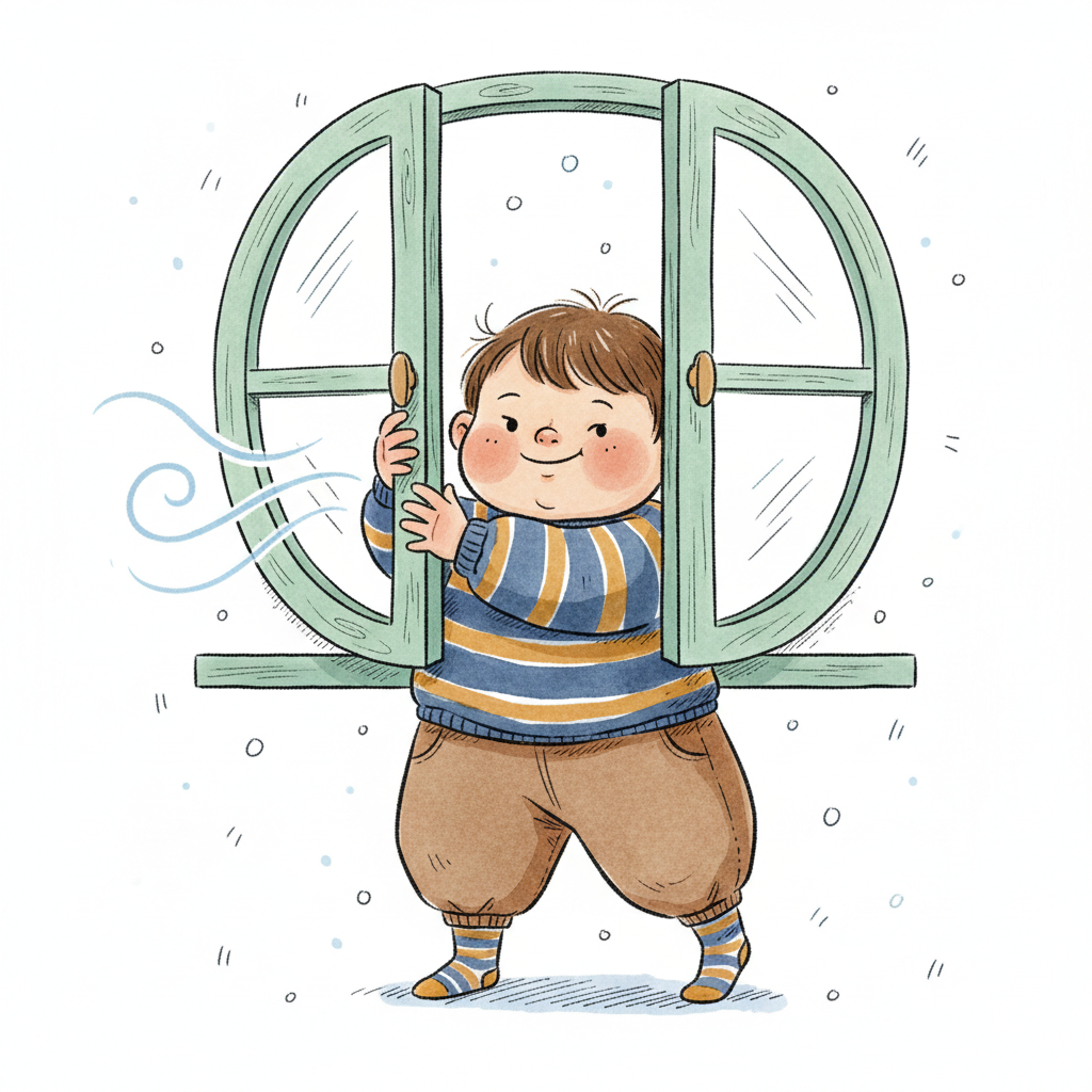 Ein Junge öffnet ein Fenster und genießt den frischen Wind.