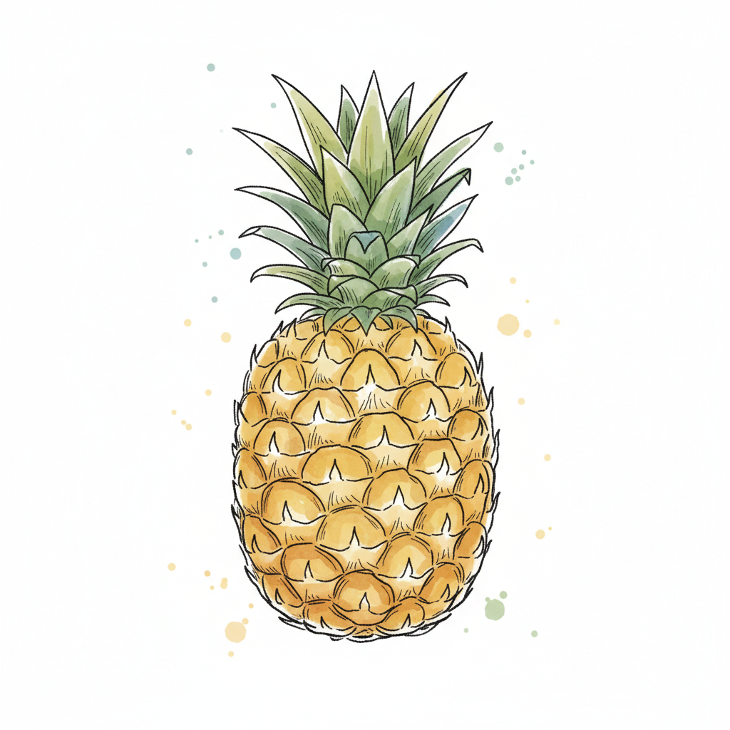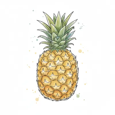 Eine farbenfrohe Zeichnung einer Ananas mit Spritzern im Hintergrund.