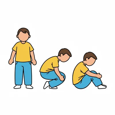 Drei Kinder in verschiedenen Sitzpositionen, gekennzeichnet durch einfache Linien.