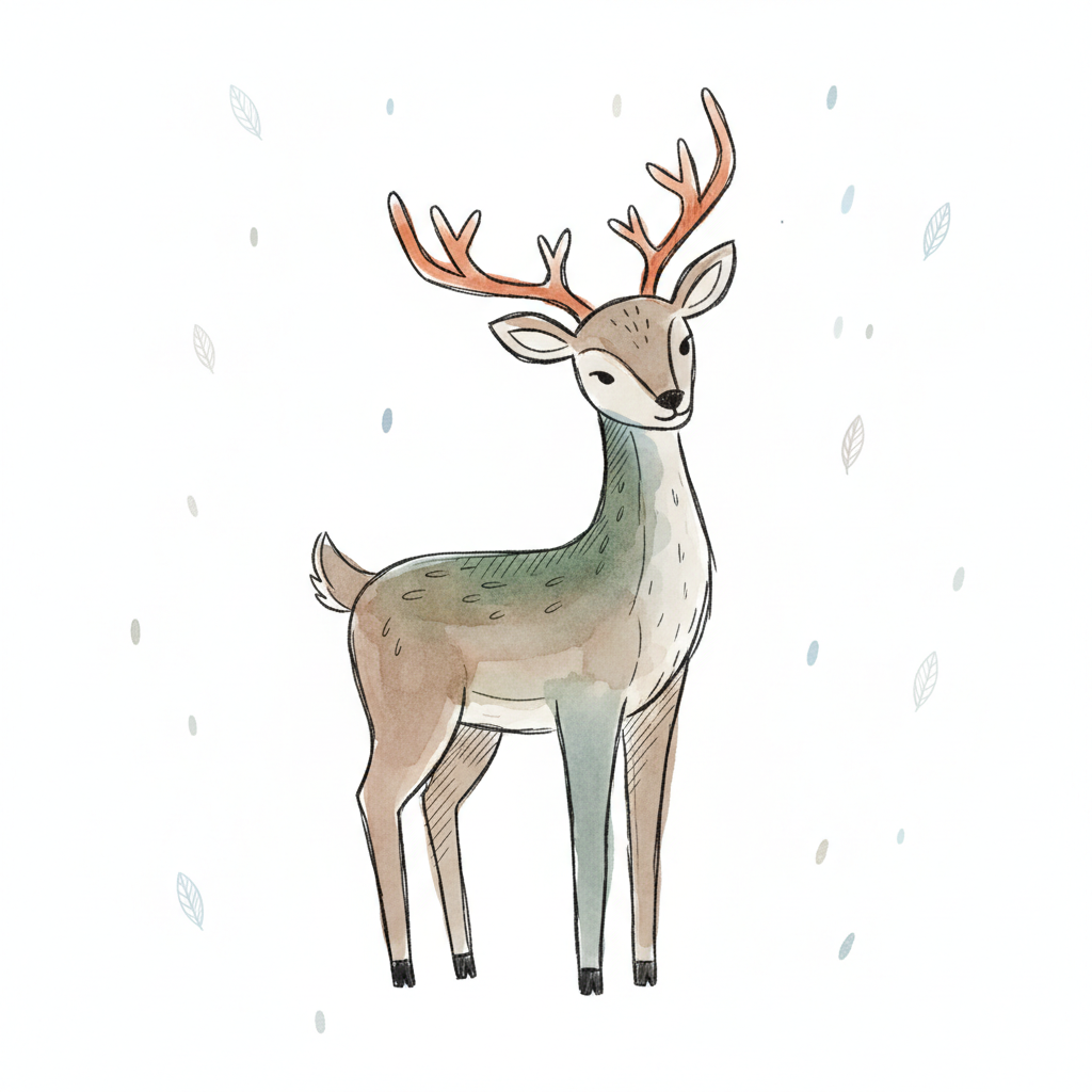 Niedliche Aquarell-Illustration eines Rehs mit Geweih auf weißem Hintergrund.