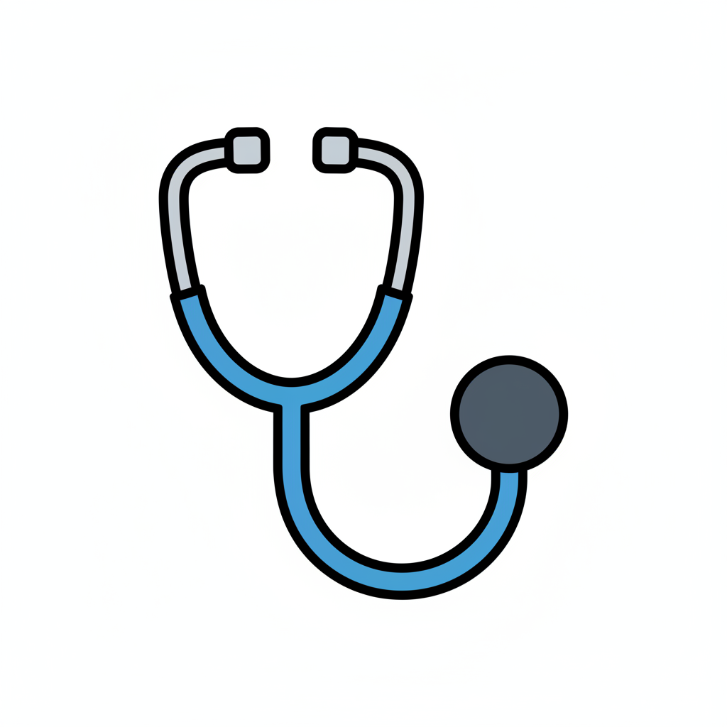Stilisiertes Stethoskop-Icon in Blau und Grau auf weißem Hintergrund.