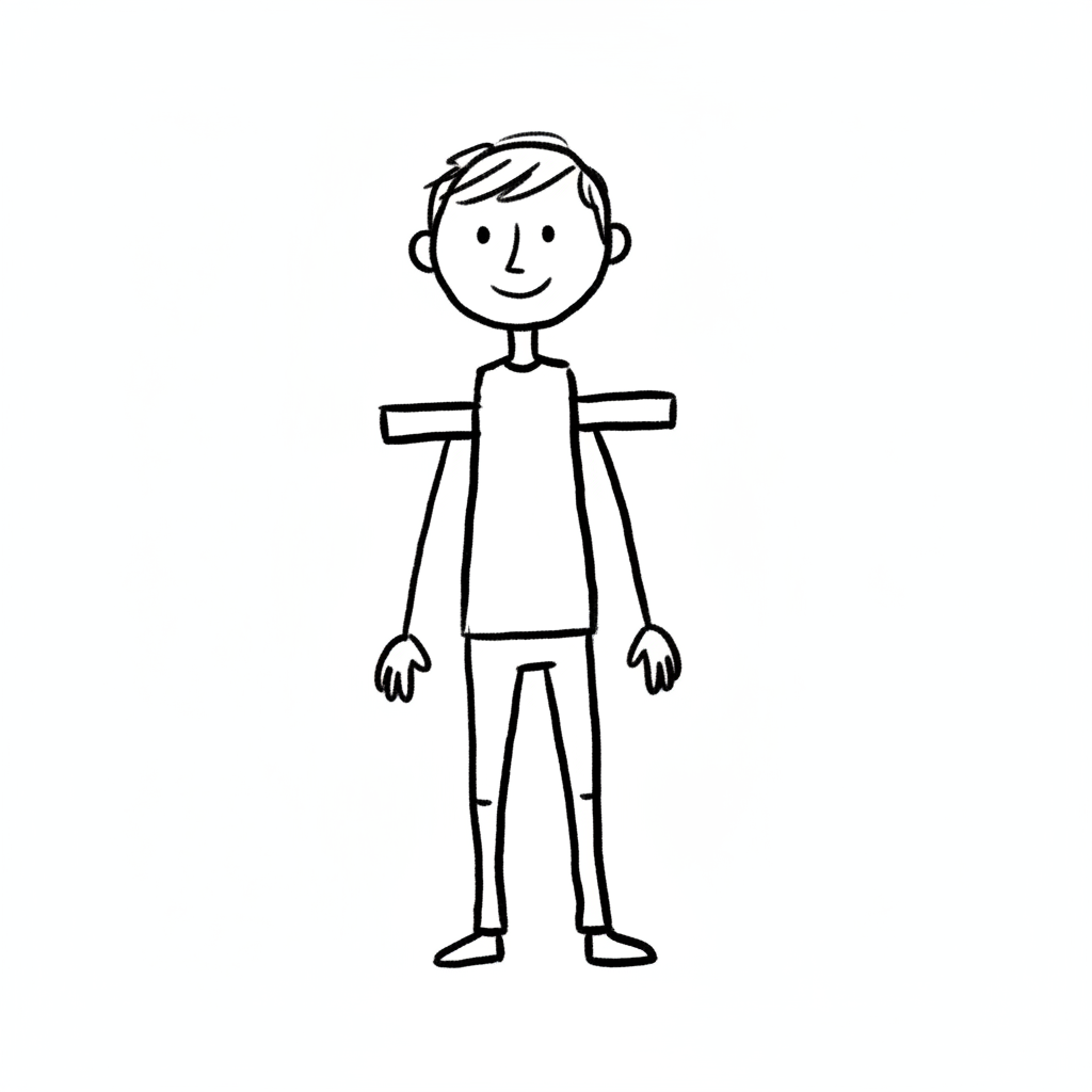 Ein einfacher, gezeichneter Mensch mit lächelndem Gesicht.
