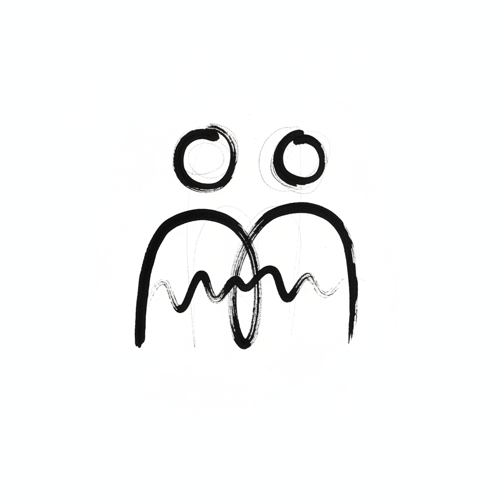 Eine minimalistische Schwarz-Weiß-Skizze. Handgezeichnet, mit Tintenmarker, dicken Konturen. Minimalistische Strichzeichnung, isoliert auf weißem Hintergrund. Keine Schattierungen, kein Grau, hoher Kontrast. Skizzenhafte Ästhetik, verspielt und grob. Hoher Kontrast, isoliert auf weißem Hintergrund. WICHTIG: KEIN TEXT im Bild. Hintergrund: Rein weiß.
