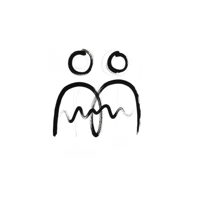 Abstrakte Darstellung mit zwei Personen und geschwungener Linie in Schwarzweiß.