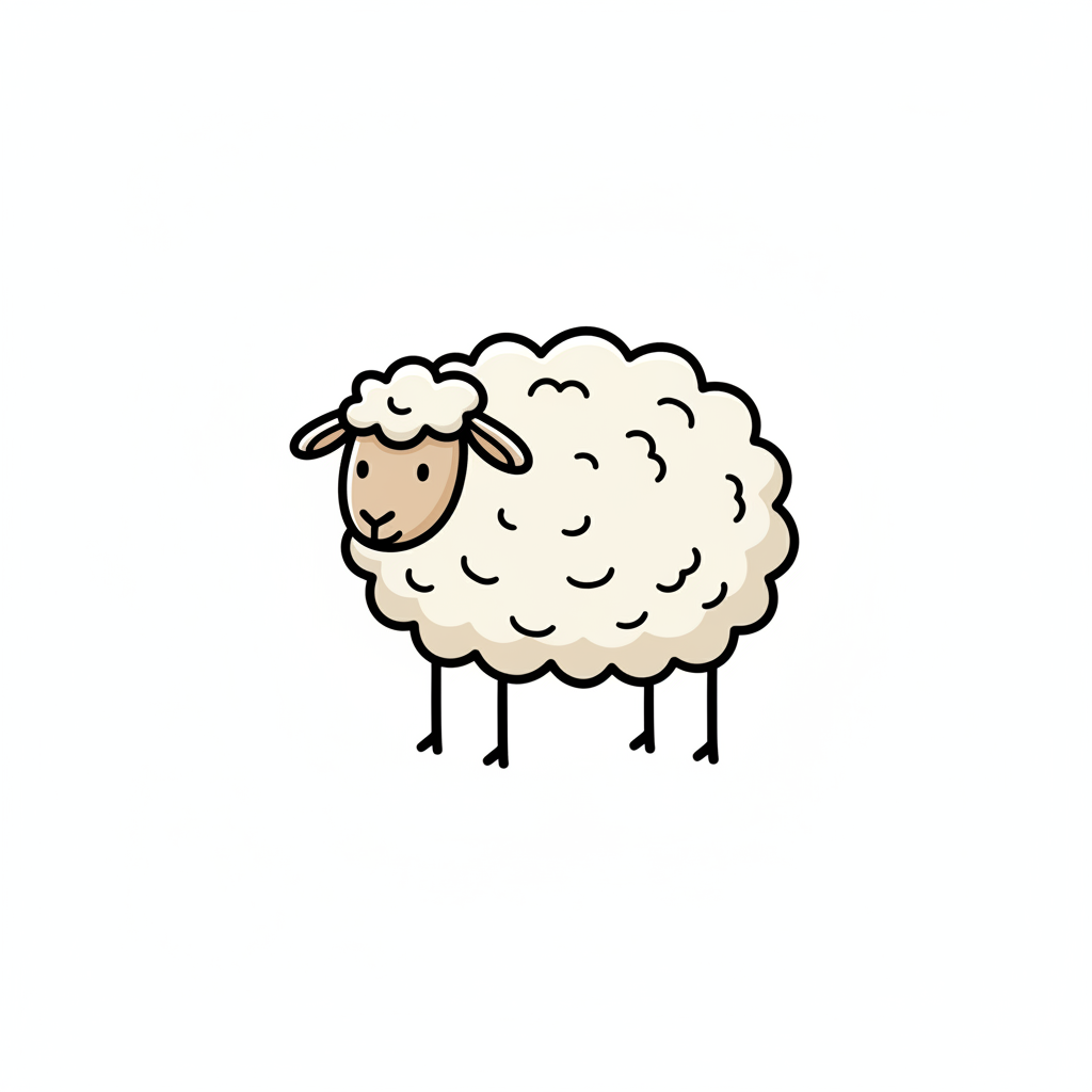 Ein niedliches, cartoonhaftes Schaf mit lockigem Fell.