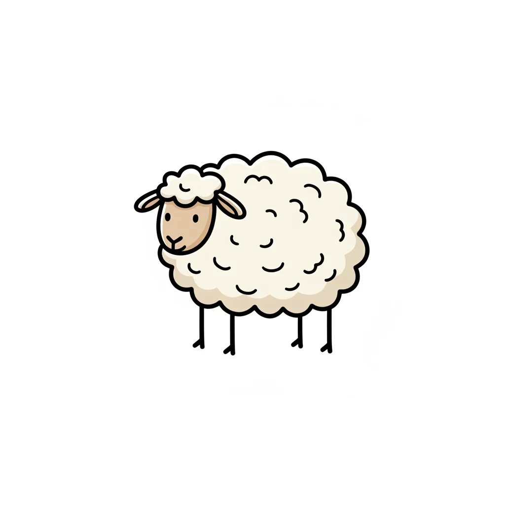 Ein niedliches, cartoonhaftes Schaf mit lockigem, weißem Fell.