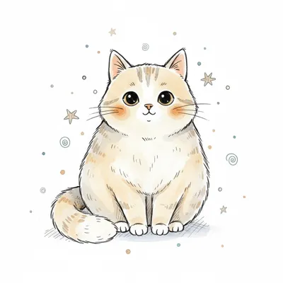 Eine süße, cartoonartige Katze mit großen Augen und einem weichen Fell.