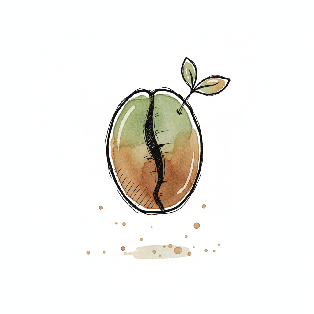 Eine gezeichnete Bohne mit einem kleinen Blatt und Riss in der Schale.