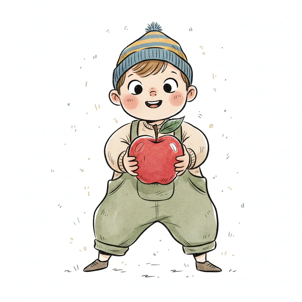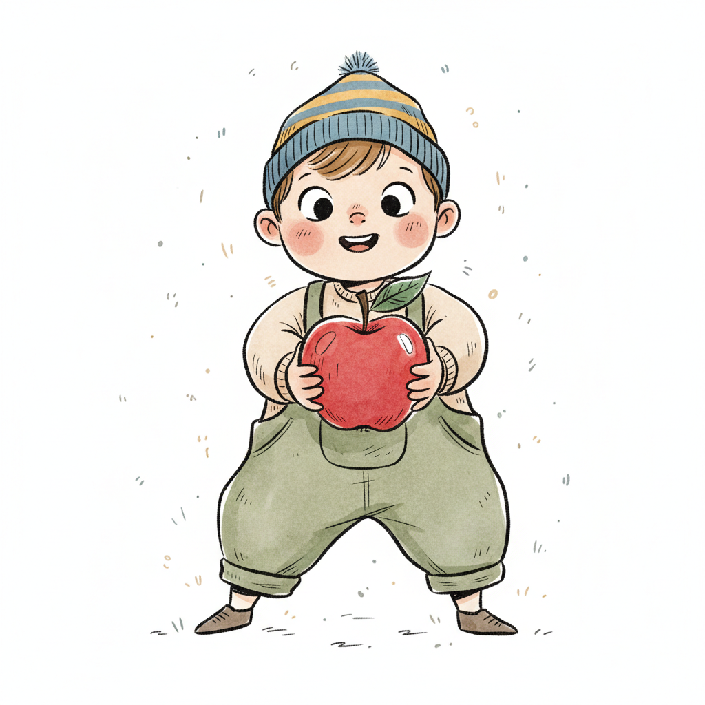 Niedliche, kindgerecht illustrierte Szene mit einem Kind oder einer Person als Hauptfigur, vor rein weißem Hintergrund, im frech-nordischen Aquarell-Skizzenstil. Klare, leicht wackelige Tuschekonturen, sichtbare Pinsel- und Strichtextur, dezente Schraffuren, weiche handgemalte Farbflächen in gedeckten Farben. Einfache, runde Formen. Keine harten Schatten, sondern sanfte, transparente Aquarellschichten. Leicht raue, handgezeichnete Linien statt glatter Vektorkanten. Subtile, vereinzelte Kritzelpunkte oder kleine Details im Hintergrund (wie Pünktchen oder feine Striche), aber keine echte Umgebung oder Landschaft. Die Figur ist mittig zentriert. Insgesamt charmant, humorvoll, warm und handgemacht wirkend. WICHTIG: Das Bild darf ABSOLUT KEINEN TEXT, KEINE BUCHSTABEN und KEINE ZAHLEN enthalten.