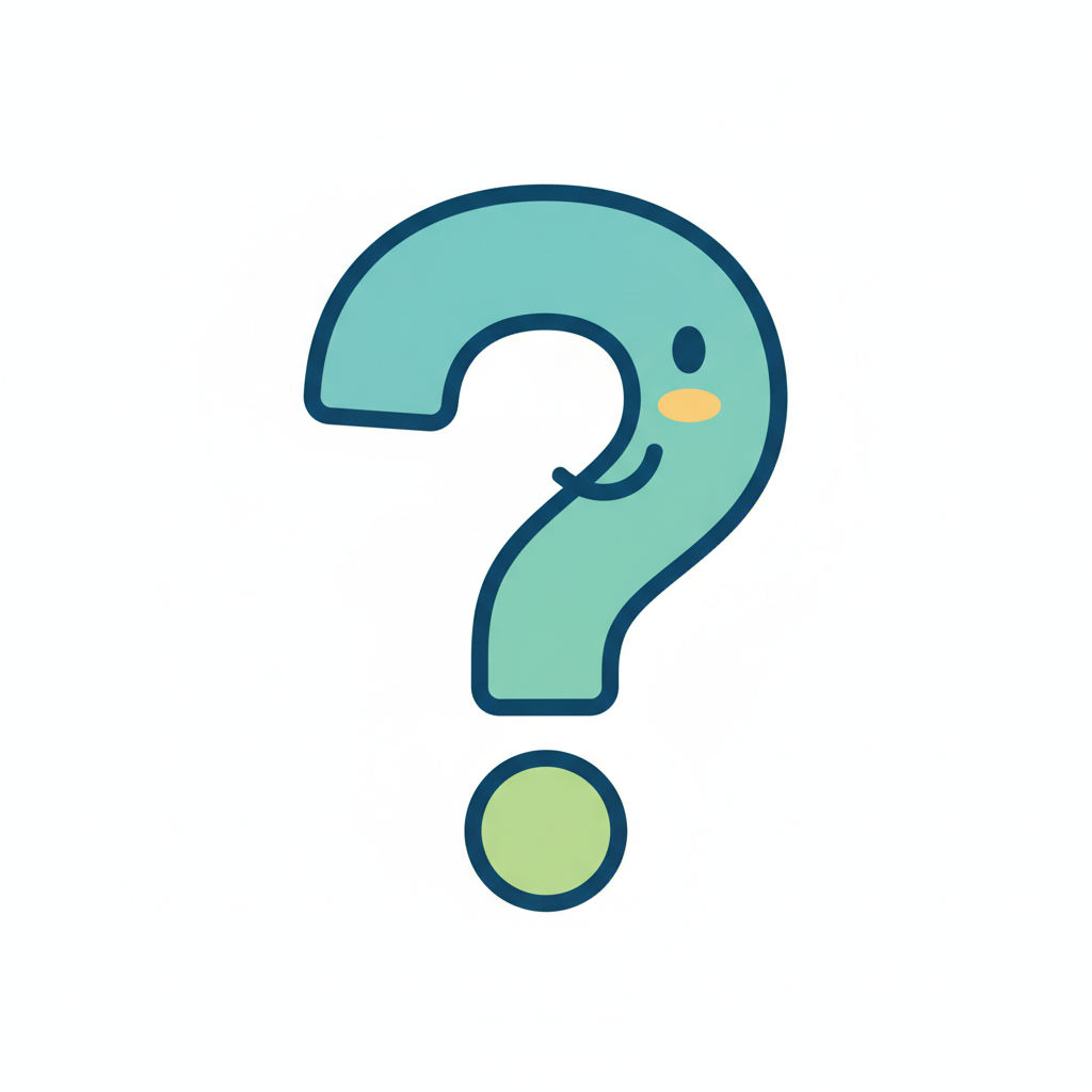 Ein lächelndes, hellblaues Fragezeichen im Cartoon-Stil auf weißem Hintergrund.