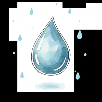 Wassertropfen-Illustration in Aquarellfarben mit kleineren Tropfen und Pfütze.