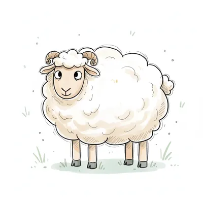 Ein niedliches, gezeichnetes Schaf mit lockigem Fell auf einer Wiese.