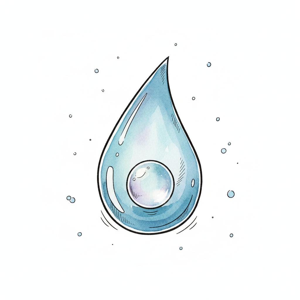 Eine stilisierte Wassertropfen-Illustration mit einer reflektierenden Blase.