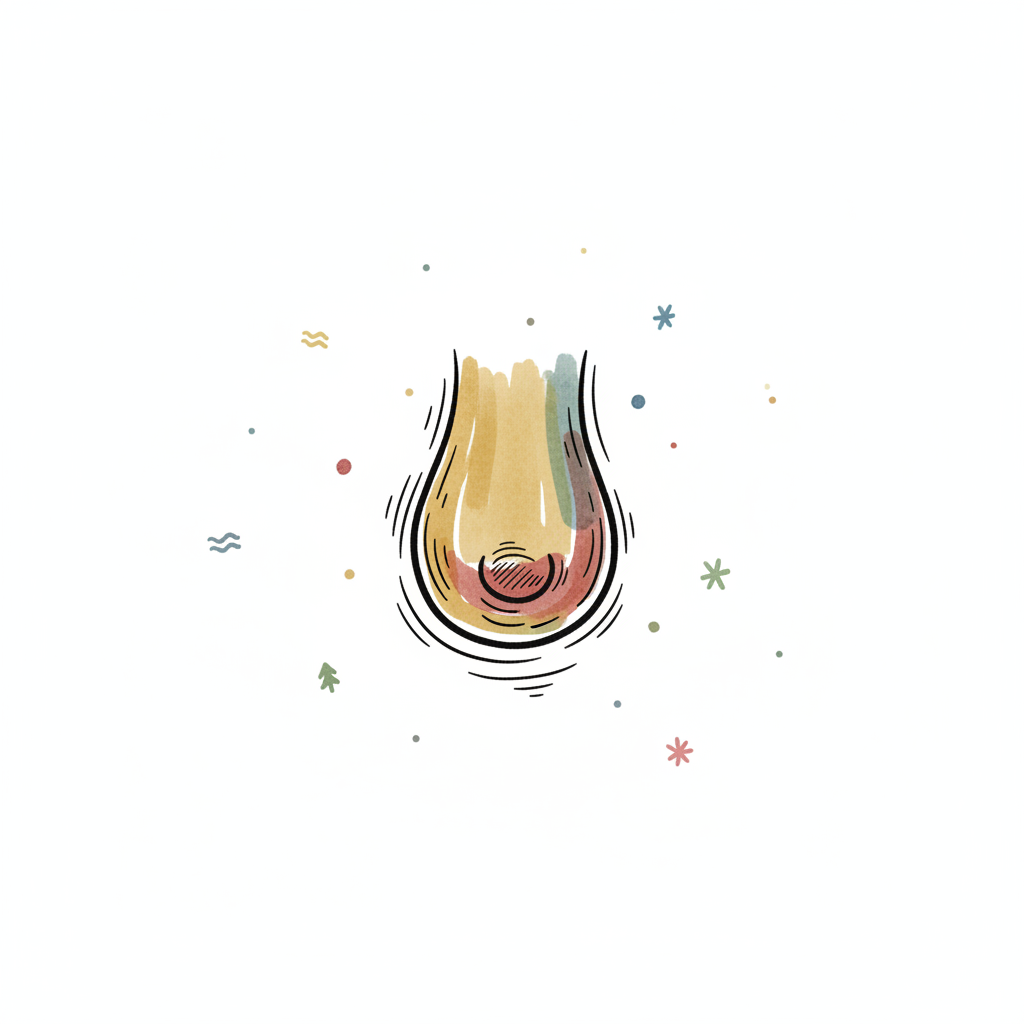Für ältere Kinder illustrierter Gegenstand als einzelner, zentrierter Gegenstand vor weißem Hintergrund, im frech-nordischen Aquarell-Skizzenstil. Klare, leicht wackelige Tuschekonturen, sichtbare Pinsel- und Strichtextur, dezente Schraffuren, weiche handgemalte Farbflächen in gedeckten Farben. Runde, einfache Formen. Keine harten Schatten, sondern sanfte, transparente Aquarellschichten. Leicht raue, handgezeichnete Linien statt glatter Vektorkanten. Subtile, vereinzelte Kritzelpunkte oder kleine Details im Hintergrund, aber keine echte Szene. Gegenstand steht oder schwebt mittig. Insgesamt charmant, humorvoll, warm und handgemacht wirkend, wie eine moderne Illustration auf weißem Hintergrund. Gegenstände sollen keine Gesichter haben.