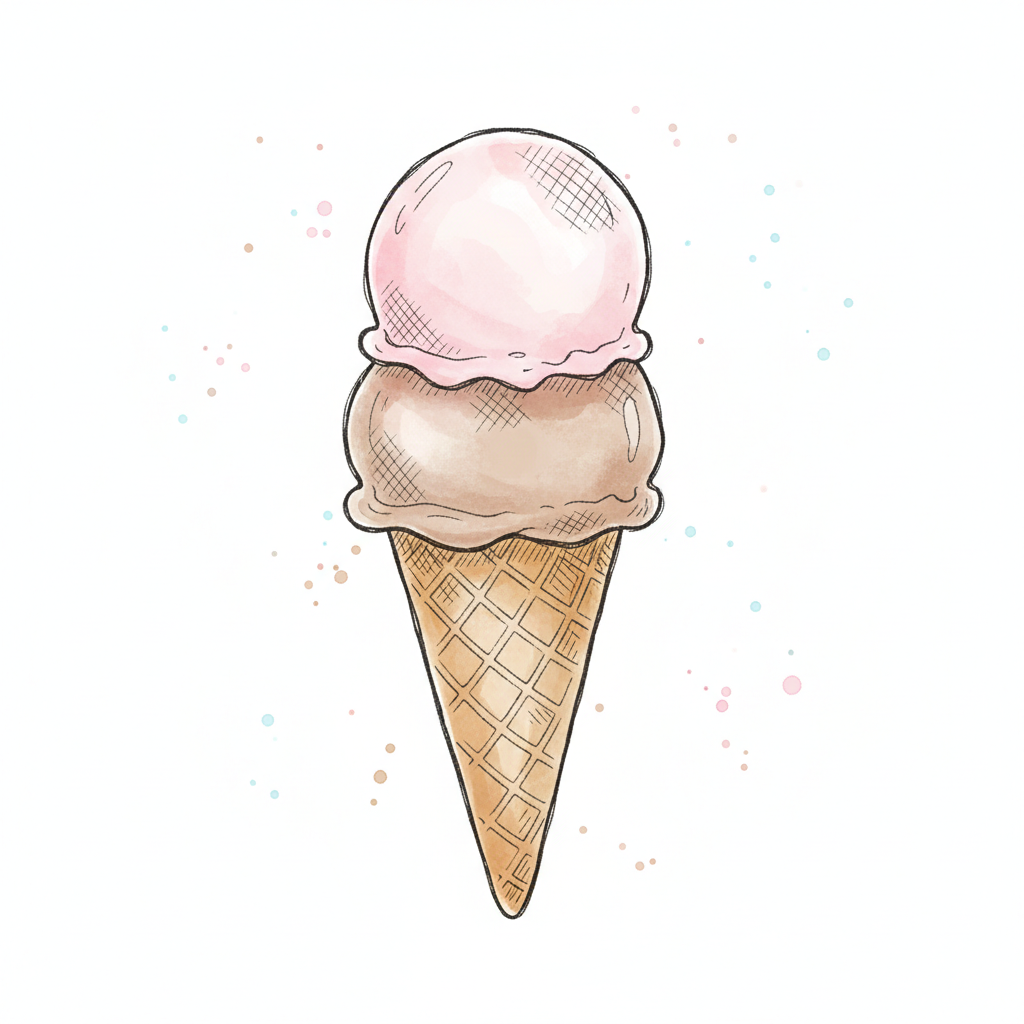 Ein Waffeleis mit zwei Kugeln, rosa und braun, vor einem hellen Hintergrund.