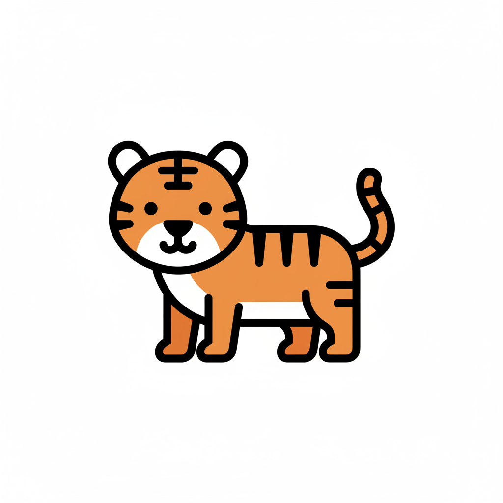 Ein niedlicher, cartoonhaft gestalteter Tiger mit orangefarbenem Fell.