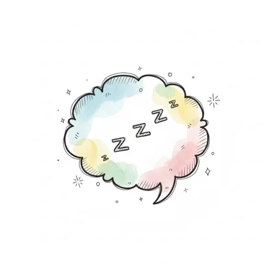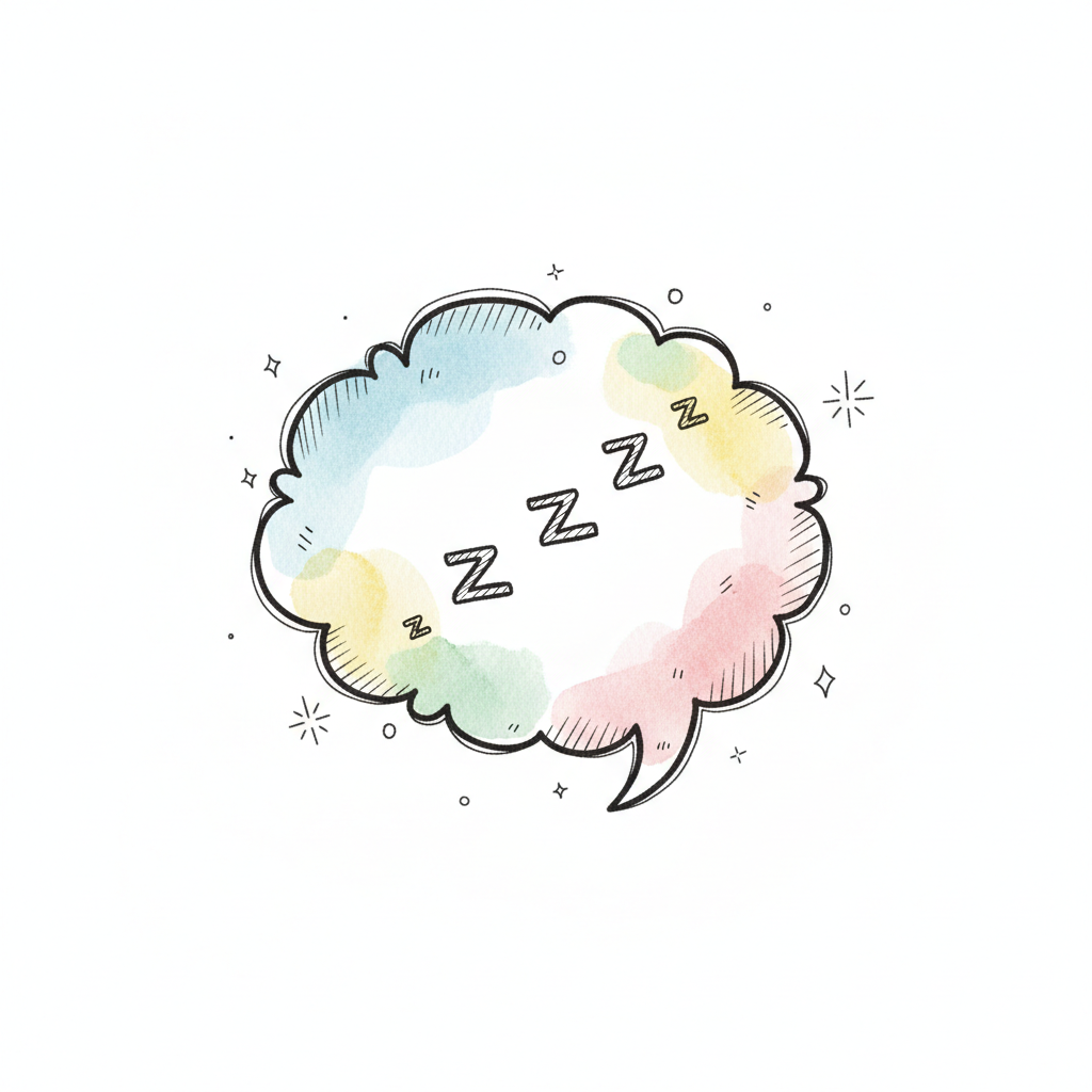 Bunte Sprechblase mit 'Zzz' Symbolen für Schlaf oder Müdigkeit im Aquarell-Stil.
