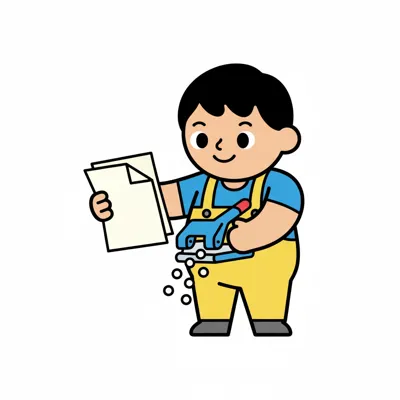 Ein Junge mit einer Maschine, die Papier bearbeitet.