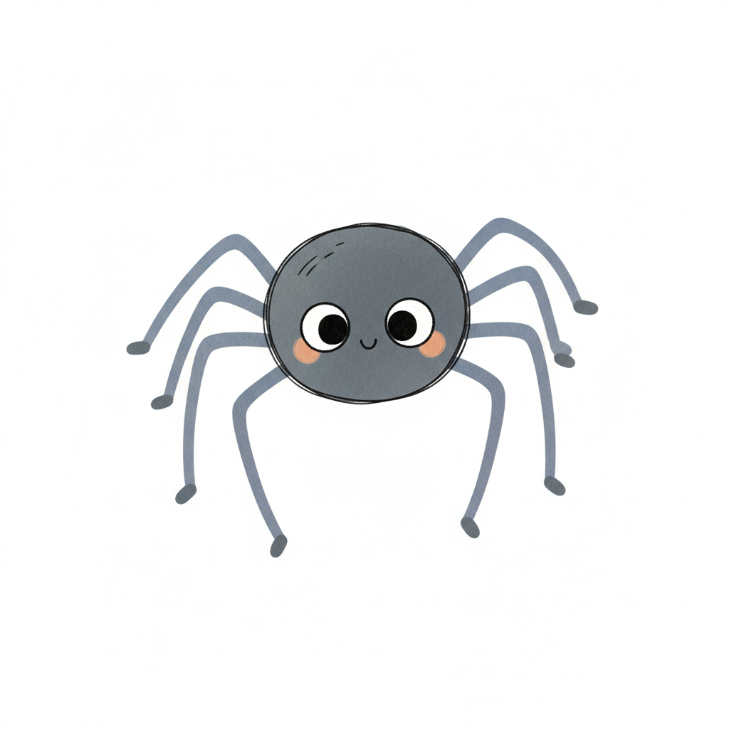 Ein niedlicher, cartoonartiger Spider mit großen Augen.