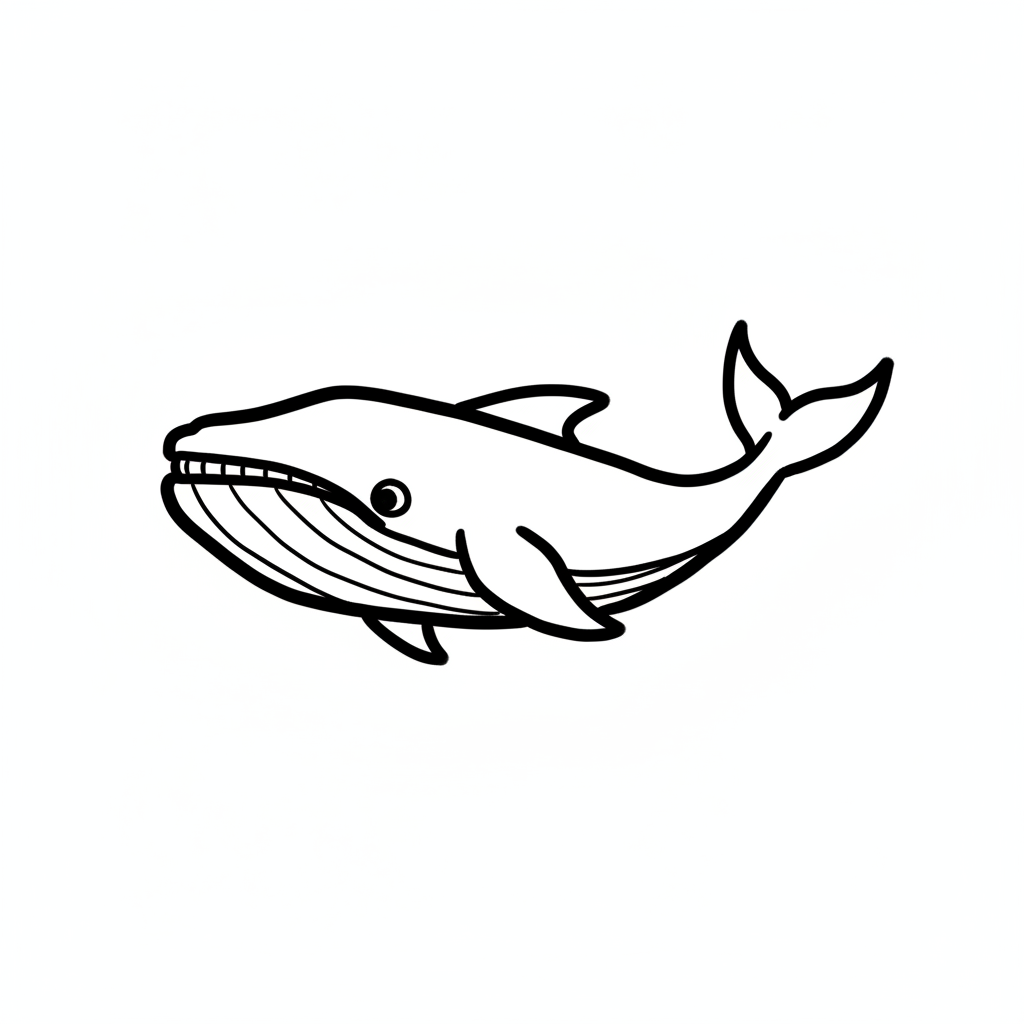 Niedliche Schwarz-Weiß-Illustration eines Wals mit offenem Maul und Barten.