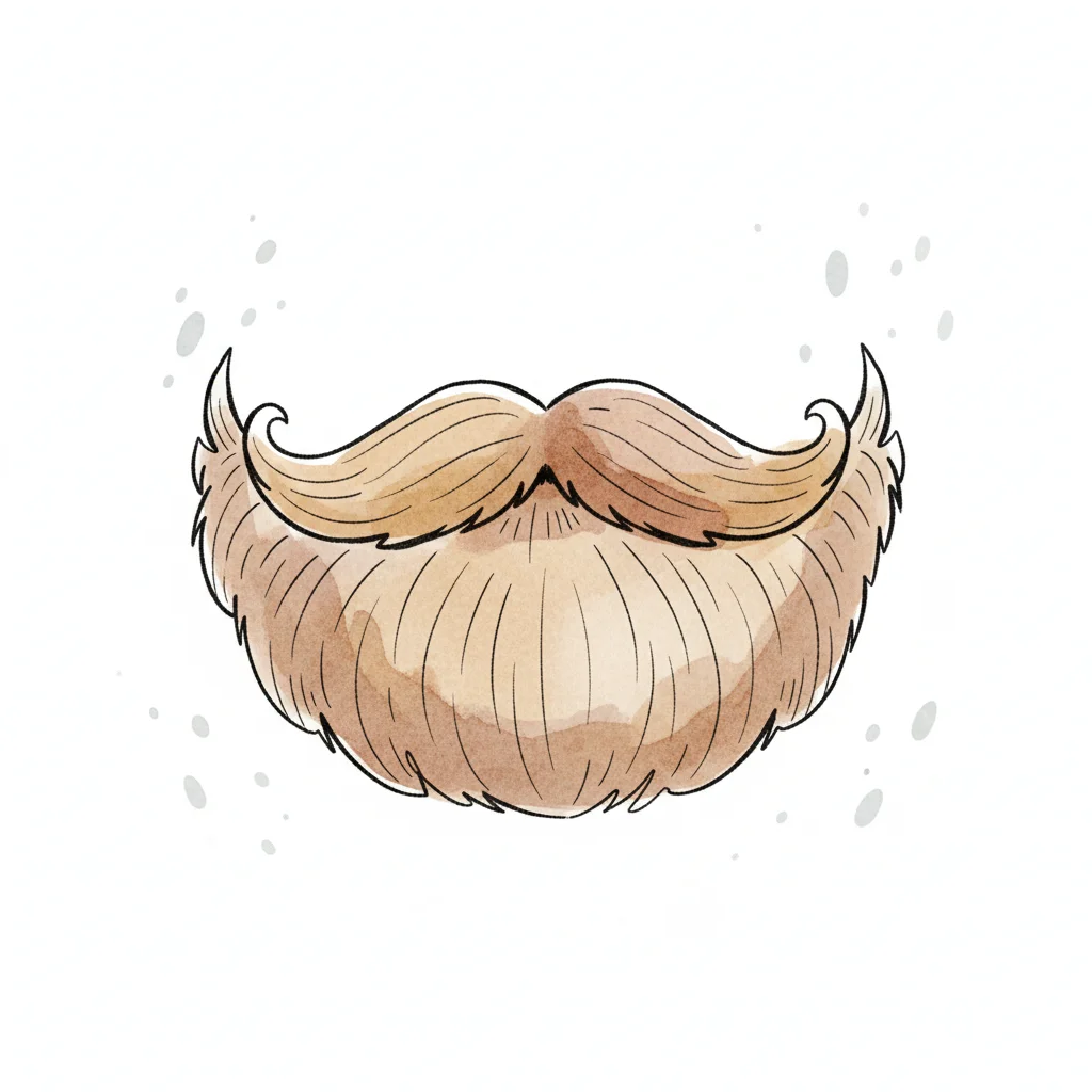 Aquarell-Illustration eines blonden Vollbarts mit gezwirbeltem Schnurrbart auf weißem Hintergrund.