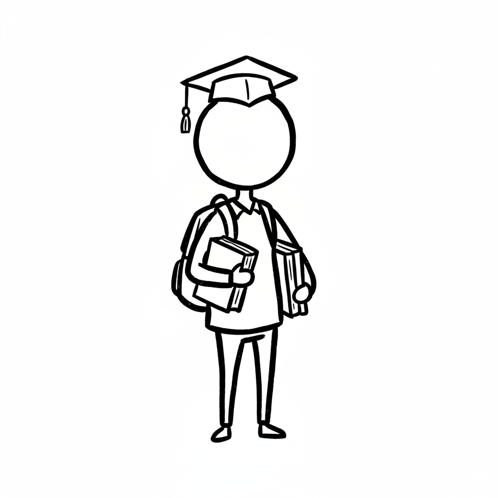 Ein grafiche Darstellung eines Studenten mit Mütze und Büchern.