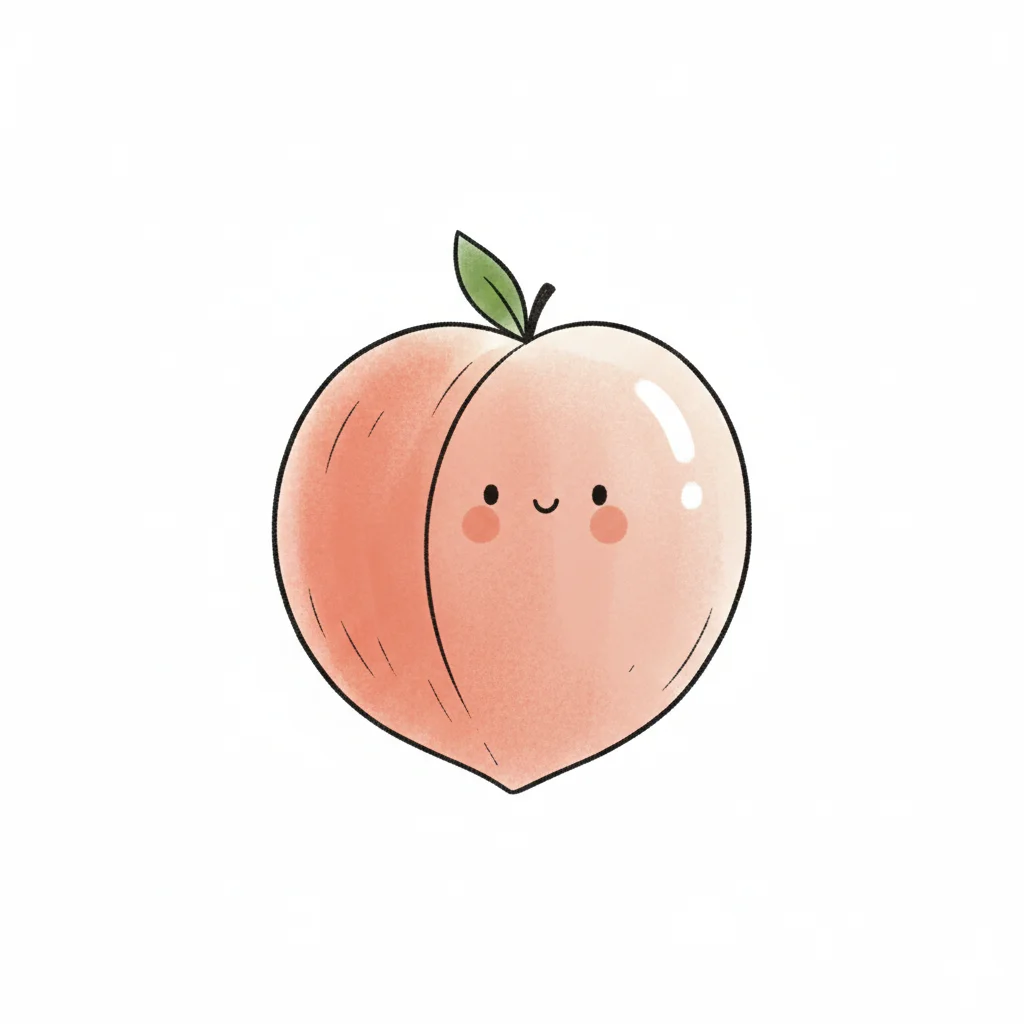 Ein niedlicher, lächelnder Pfirsich mit einem Blatt.