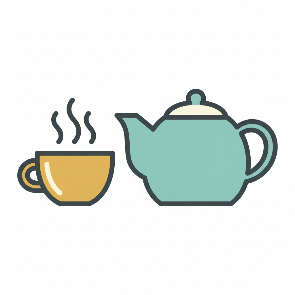Teekanne und Tasse mit Dampf darstellt einladende Teeszene.