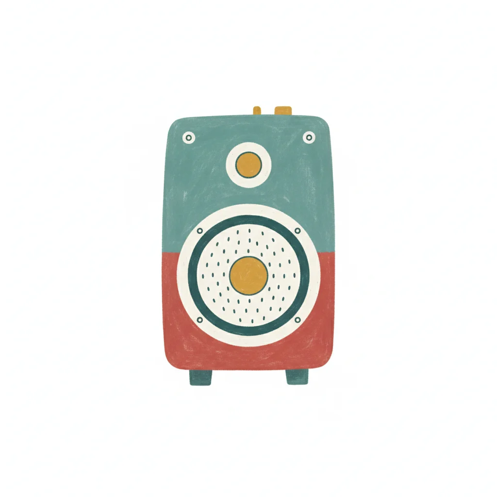 Bunte, stilisierte Lautsprecherillustration in zwei Farben.