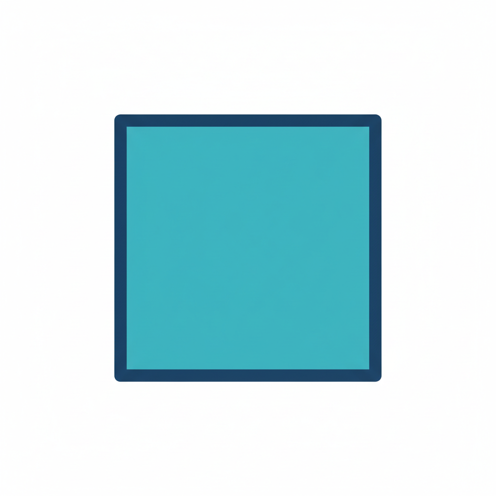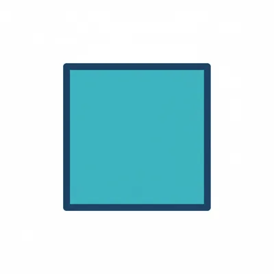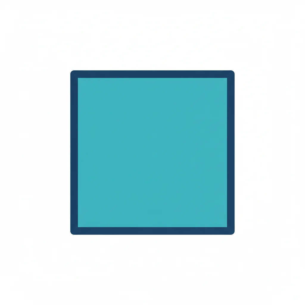 Ein türkisfarbenes Quadrat mit dunkelblauem Rand auf weißem Hintergrund.