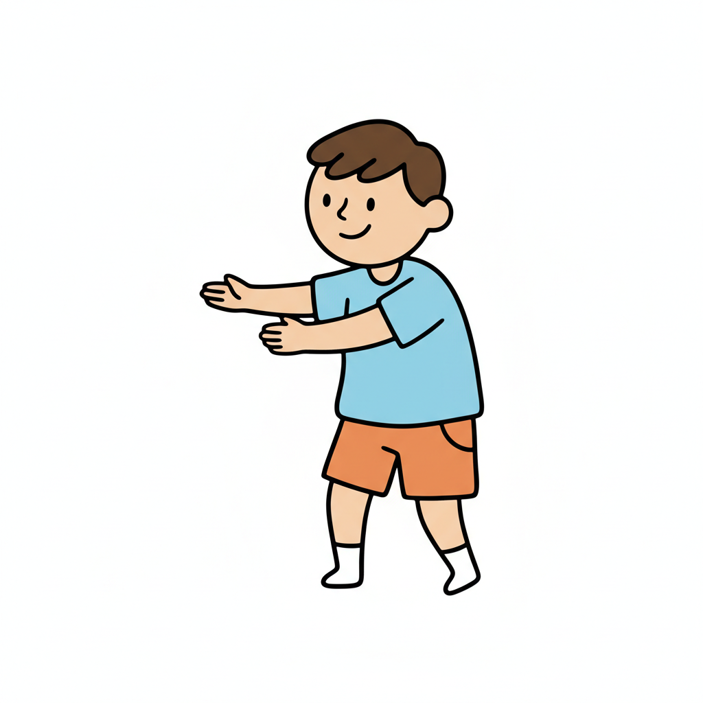 Minimalistische, handgzeichnete Illustration mit deutlich handgezeichneter Wirkung. Handgezeichnete Schwarze Konturen ungleichmäßig und unregelmäßig von Hand gezeichnet. Figuren werden mit stark vereinfachten Körperformen dargestellt. Arme und Beine sind nur als einfache Linien oder Strichformen angedeutet. Flächige Farben ohne Verläufe oder Texturen, ruhige harmonische Farbpalette und reduzierte Details sorgen für eine klare, kindgerechte Darstellung. Saubere, übersichtliche Komposition mit rein weißem Hintergrund.