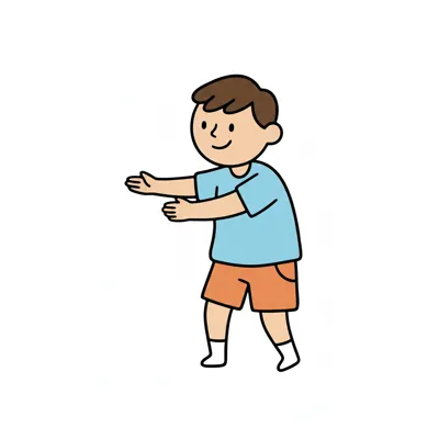 Ein fröhlicher Junge mit gestrecktem Arm und einem Lächeln.