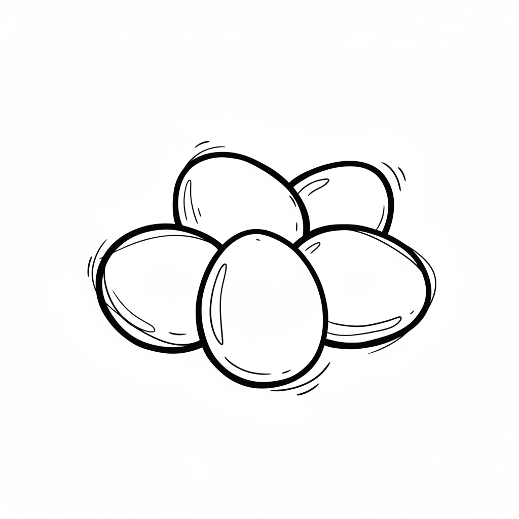 Schwarz-weiße Doodle-Illustration von fünf Eiern.