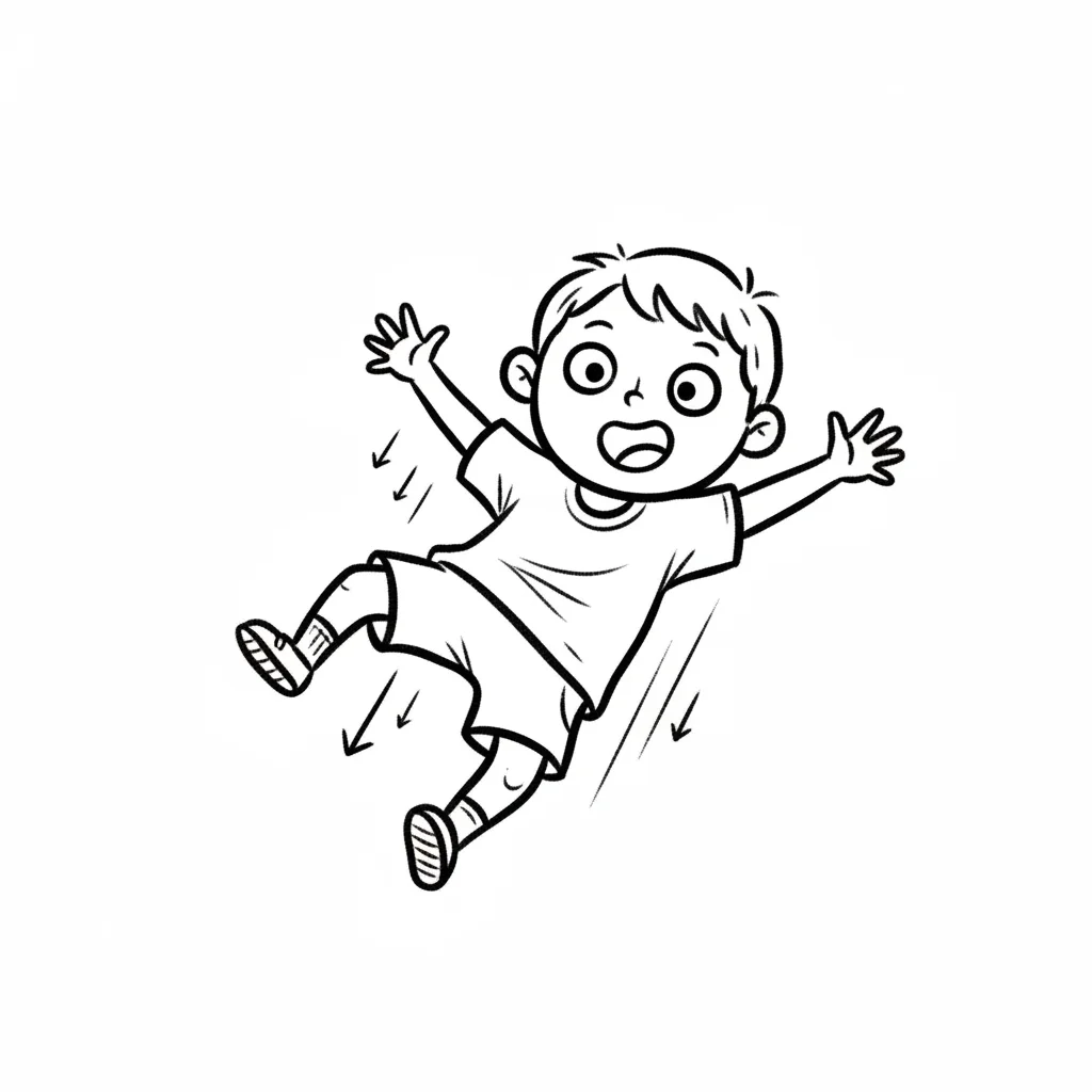 Ein fröhlicher Junge rutscht spielerisch mit Ausruf vor Freude.