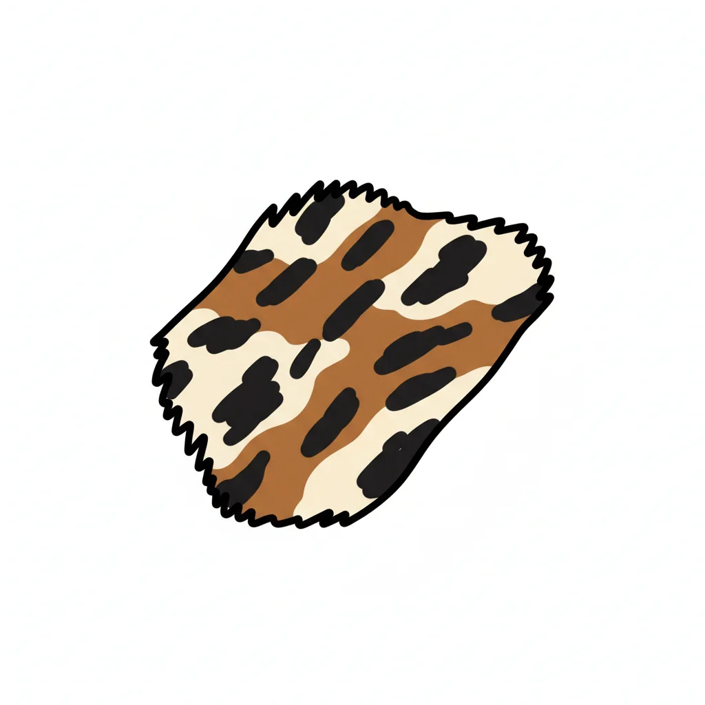 Gezacktes Stück Stoff mit Leopardenmuster in Braun, Schwarz und Beige.