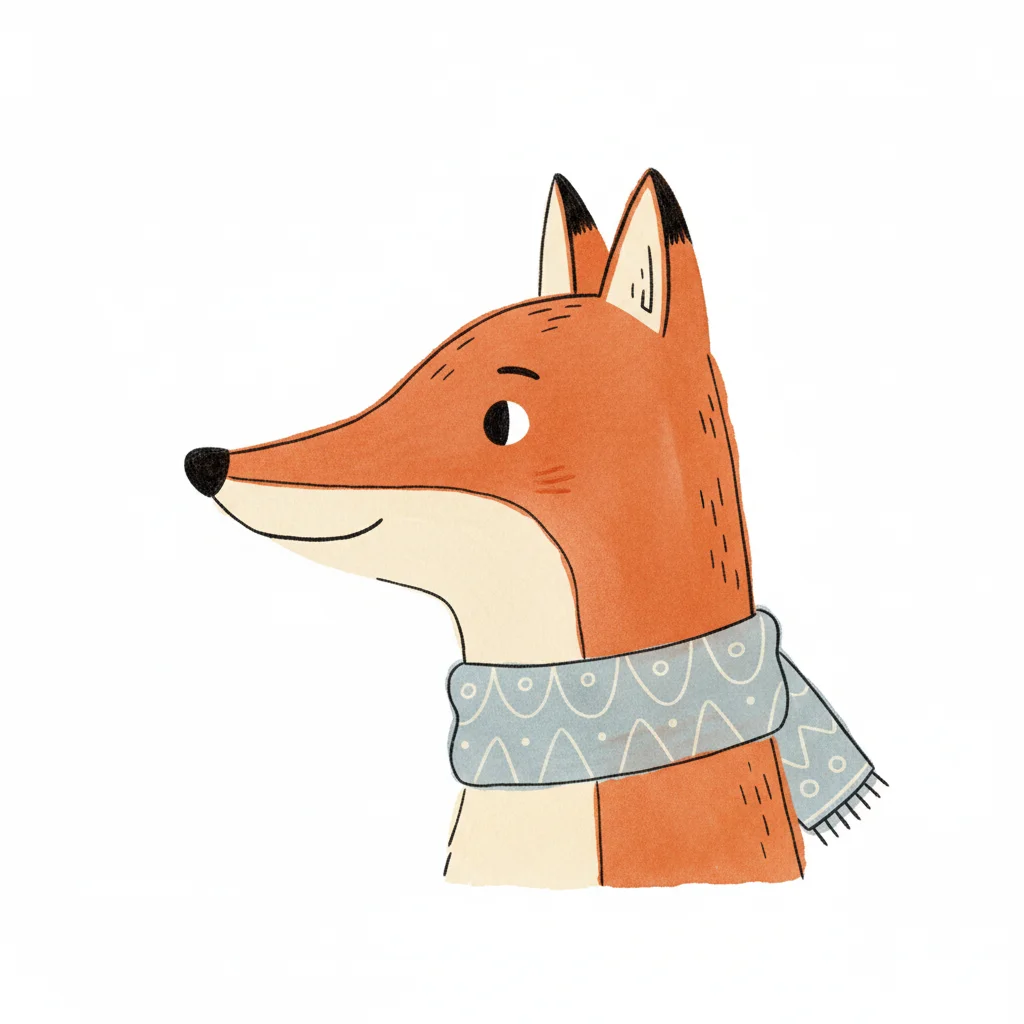 Niedliche Illustration eines Fuchses mit orangefarbenem Fell und einem gemusterten Schal.