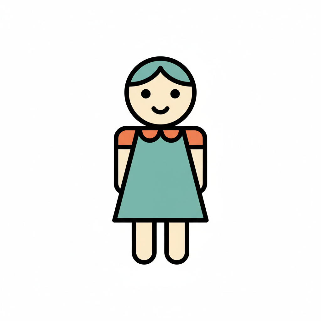 Minimalistische Vektorillustration im flächigen Icon-Stil. Sehr einfache, reduzierte Formen mit klaren, dicken Konturen und wenigen Details. Flächige Farben ohne Verläufe oder Texturen, ruhige Farbpalette, klare Silhouette und gut lesbare, freundliche Figur. Moderne, kindgerechte Lernillustration im Stil einfacher Piktogramme, sauberer Hintergrund und übersichtliche Komposition. Hoher Kontrast, isoliert auf weißem Hintergrund. WICHTIG: KEIN TEXT im Bild. Hintergrund: Rein weiß.