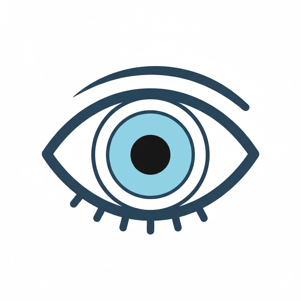 Symbol eines Auges mit blauer Iris und schwarzen Pupille.