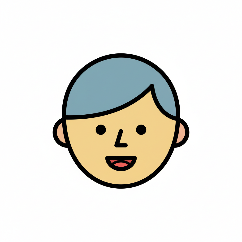 Ein lächelndes, cartoonhaftes Gesicht mit blonder Frisur.