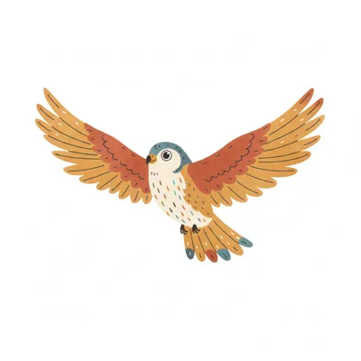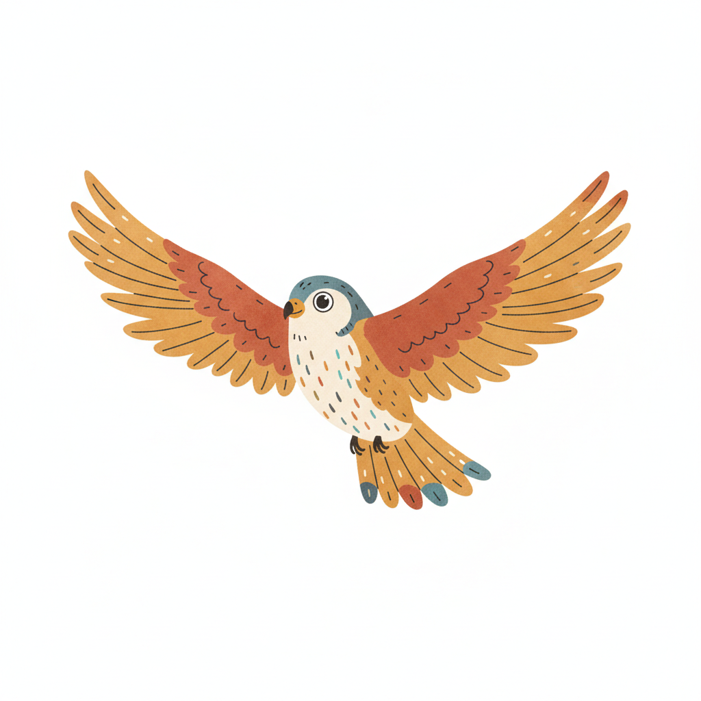 Illustration eines fliegenden Vogels mit braunem Gefieder und hellem Bauch auf weißem Hintergrund.