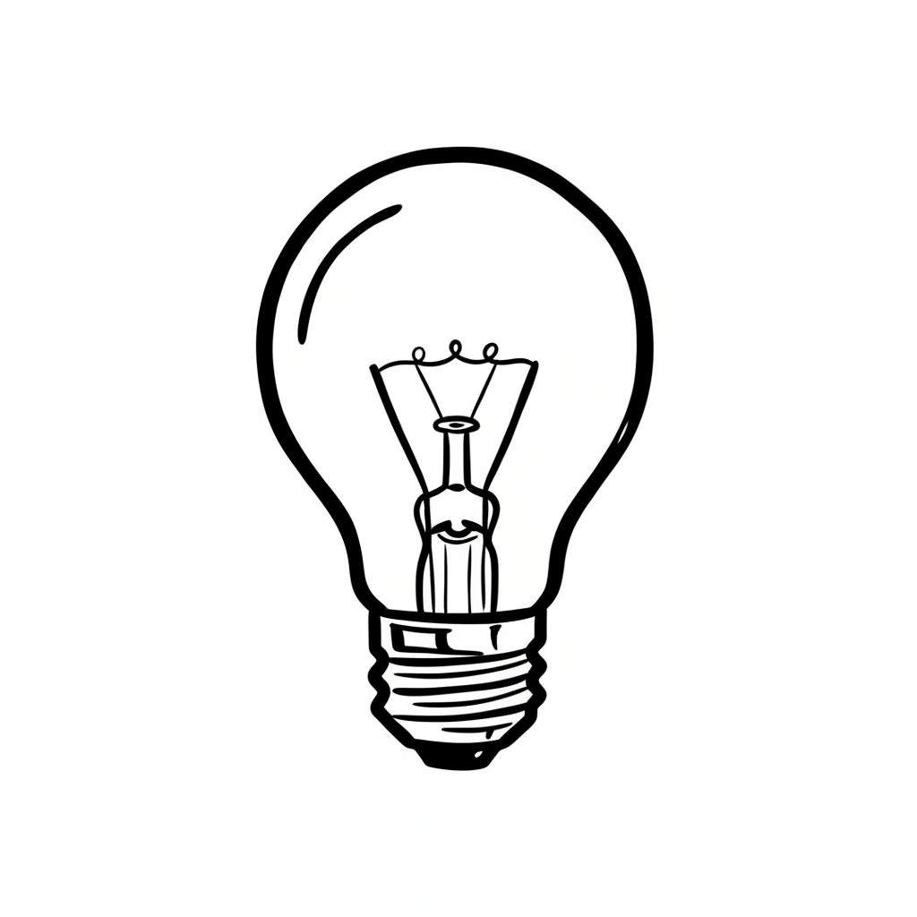 Ein einfaches, gezeichnetes Bild einer Glühbirne.