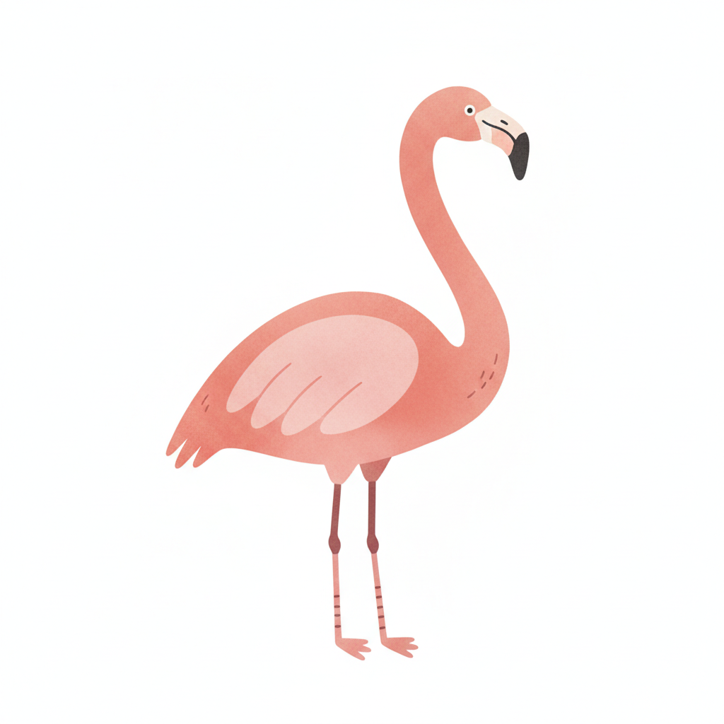 Ein stilisierter rosa Flamingo mit langen Beinen und elegantem Hals.