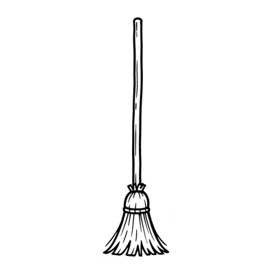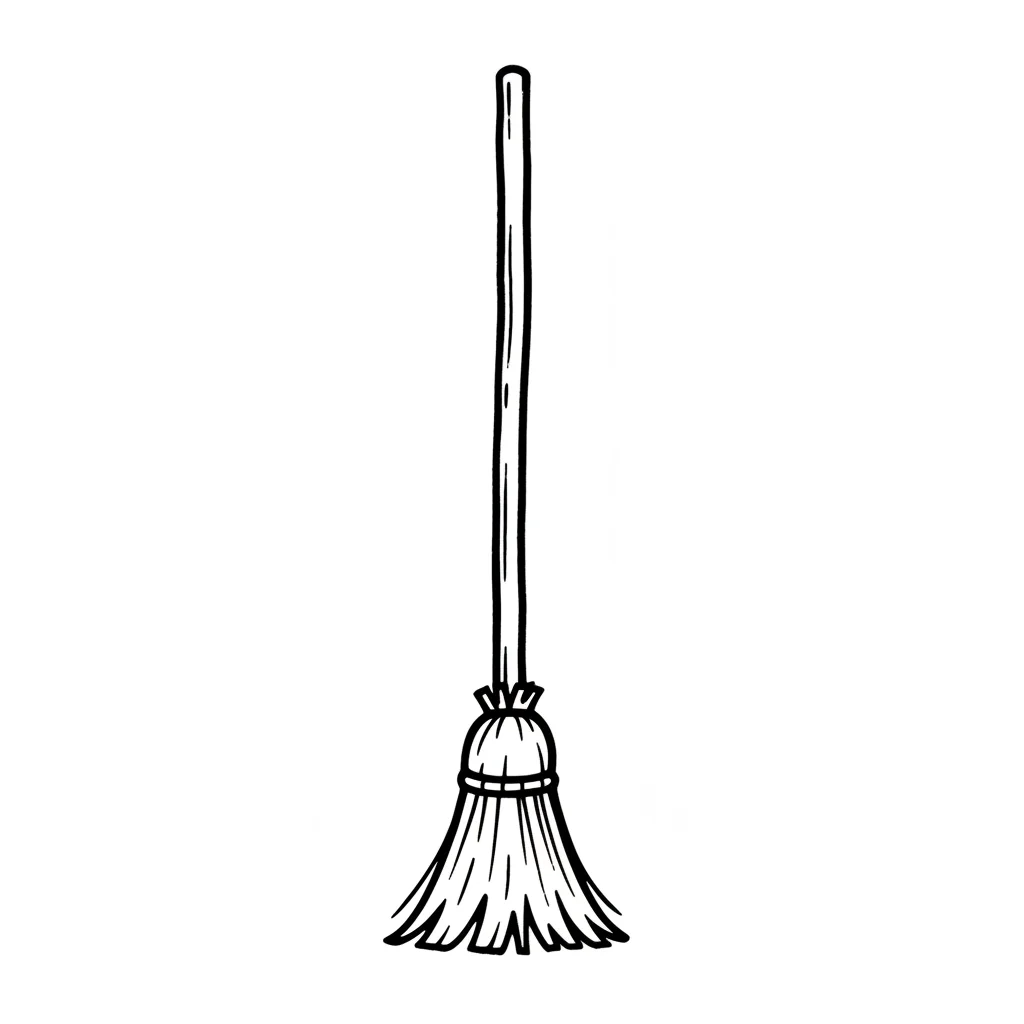 Eine einfache Besenzeichnung mit langem Stiel und Borsten.