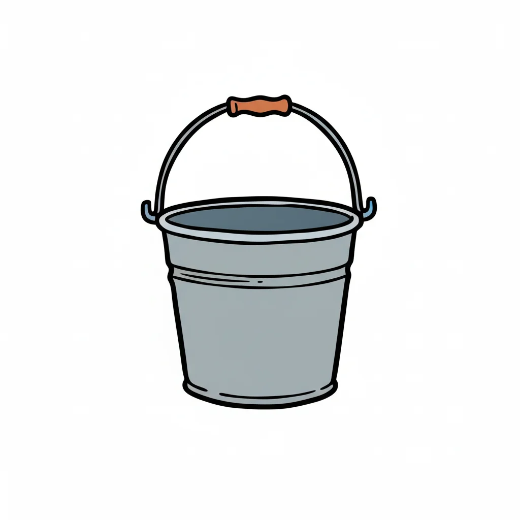 Ein grauer Eimer mit einem Holzgriff.