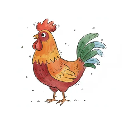 Bunte Illustration eines Huhns mit lebhaften Farben und Details.