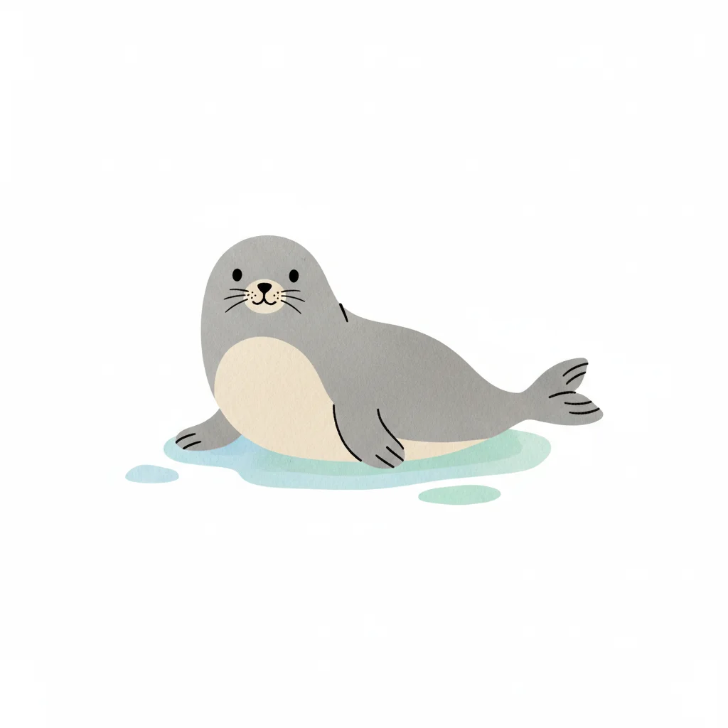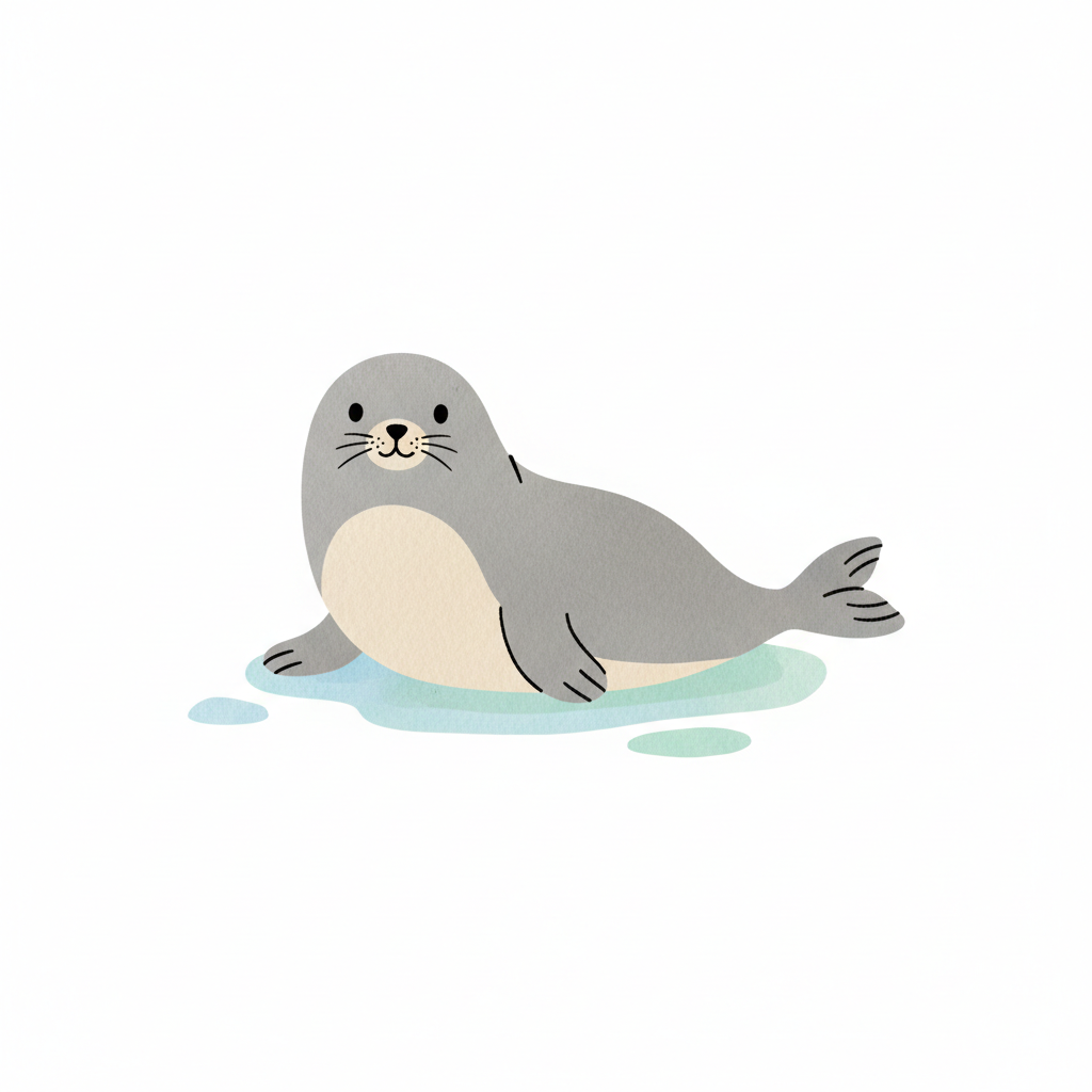 Eine niedliche Seehund-Illustration auf einer hellen Fläche.