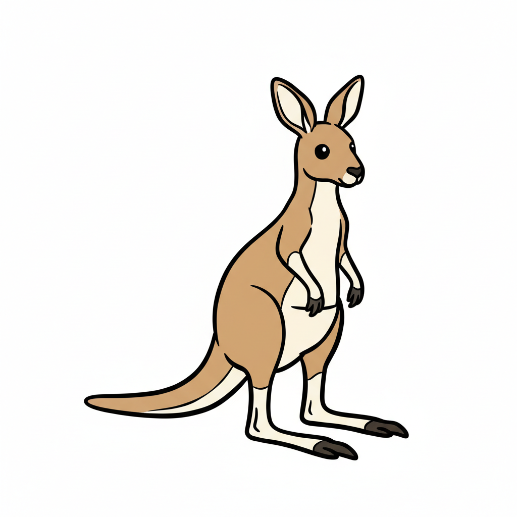 Ein Cartoon-Känguru steht aufrecht mit einem neugierigen Blick.