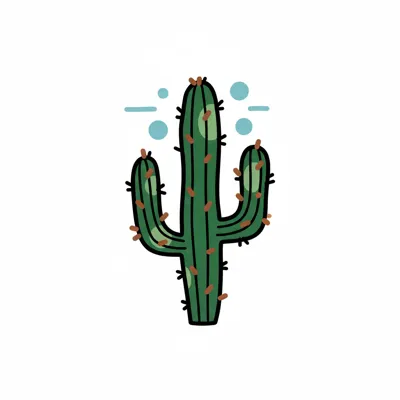 Ein stilisierter Kaktus mit mehreren Ästen und kleinen Details.