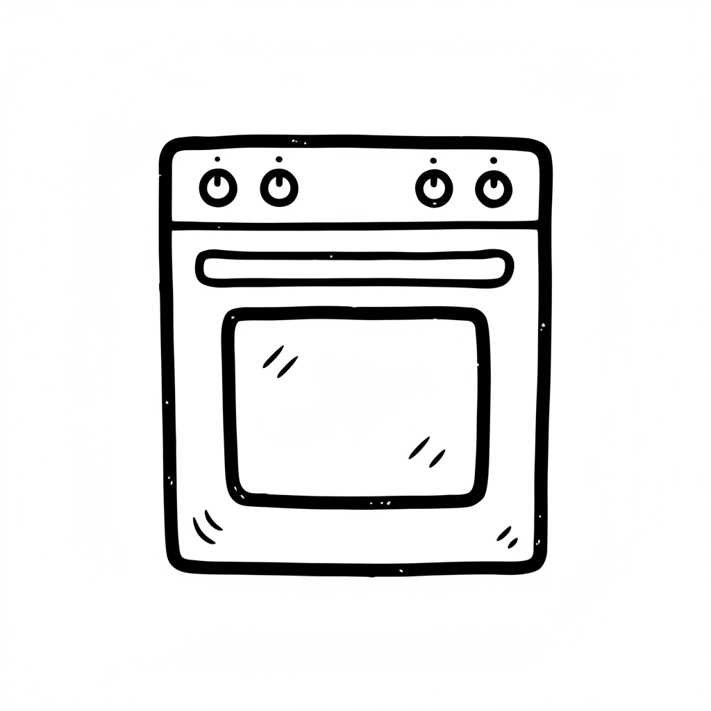 Ein einfaches, skizziertes Küchenherd-Design in Schwarz-Weiß.